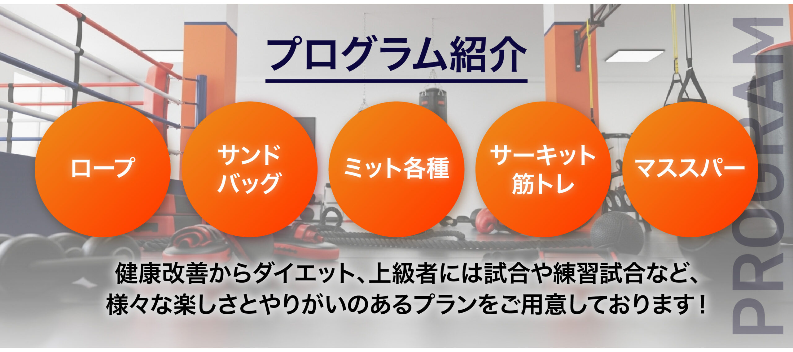 | キッズBOXING | 月17:00〜18:30 火17:00〜18:30 金17:00〜18:30 |