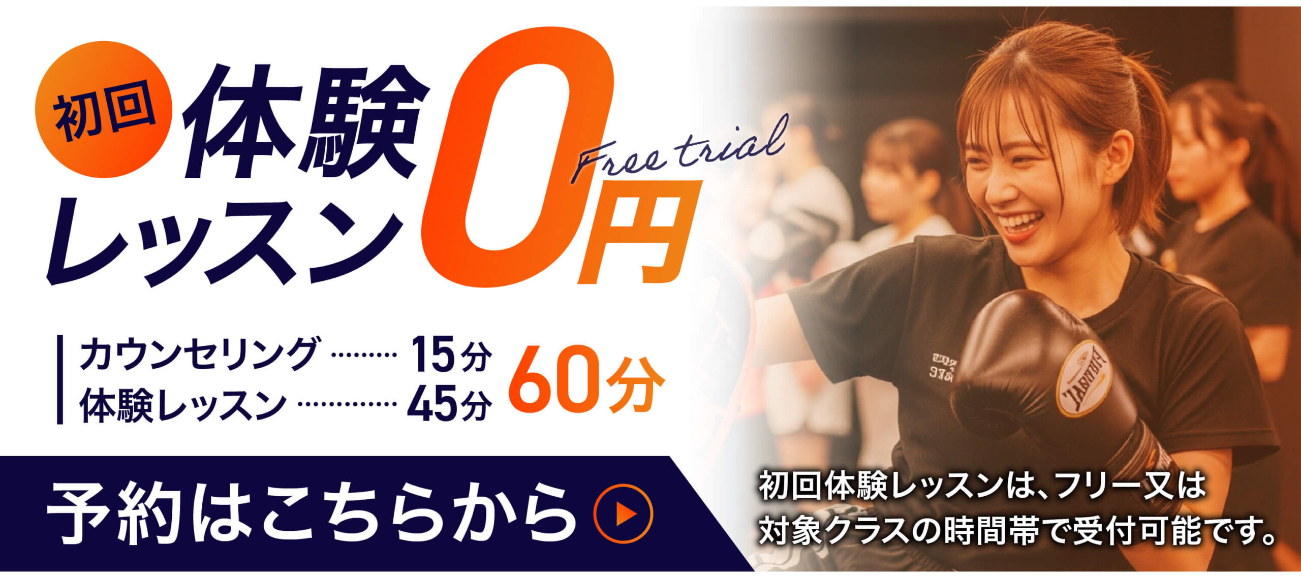 パーソナルはフリーの時間帯、初回体験レッスンはフリー又は対象クラスの時間帯で受付可能です。